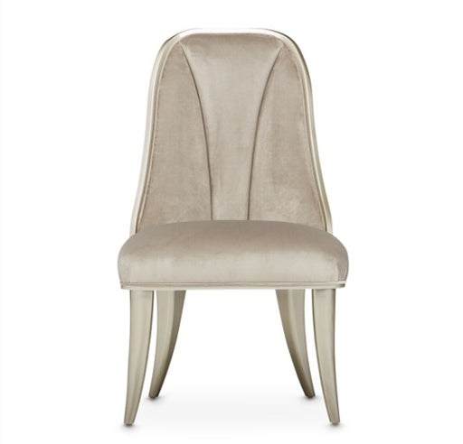 Caramel Finish 3 Drawers are velvet lined with soft closing glides and faux tassel pulls Tapered legs are finished in Chardonnay Tabletop features...