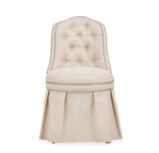 View full detailsCaramel Finish Mirror is oval with beveled edges and a Chardonnay finished trim Mirror base sits atop the vanity table