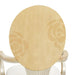 AICO Furniture Camellia Field Arm Chair (Set of 2) in Caramel 9090004-134. With its graceful silhouette and thoughtfully crafted details, the Camellia Field Dining Arm Chair is a statement of refined comfort. The oval back, adorned with camellia marquetry, pairs beautifully with the warm pecan finish and antique gold accents. Upholstered in soft chenille, it combines luxurious materials with a supportive design, offering an inviting and sophisticated dining experience.