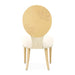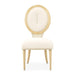AICO Furniture Camellia Field Side Chair (Set of 2) in Caramel 9090003-134. The Camellia Field Dining Side Chair blends elegance with unparalleled comfort. Its oval back showcases intricate camellia marquetry, while the warm pecan finish and antique gold accents create a harmonious balance of luxury and artistry. With a plush chenille seat and sturdy iron framework, this chair invites you to dine in effortless sophistication.