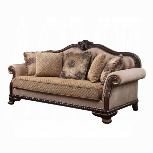 • Arched Backrest: PU, Nailhead Trim, Wood Trim with Raised Motifs