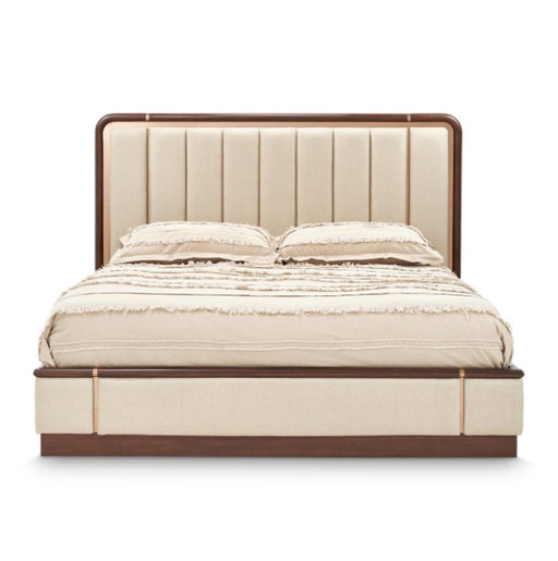 AICO Furniture Palm Gate Queen Upholstered Platform Bed in Clay