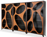 Aico 21 Cosmopolitan Curio Side Cabinet in Orange/Umber 9029505S-812. A unique expression of modern design 21 Cosmopolitan features an exciting palette of contrasting colors and alluring details that will infuse the home with energy and intrigue.
