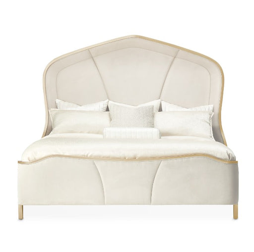 AICO London Place King Upholstered Panel Bed in Creamy Pearl