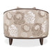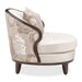 AICO Furniture Camellia Field Matching Chair in Warm Pecan 9090835-LINEN-400. The Camellia Field Matching Chair offers a captivating combination of comfort and artistry. Wrapped in plush velvet, the chair's curved back showcases the signature camellia floral pattern, while its compact form makes it a perfect accent for any space. Accompanied by a decorative camellia-patterned pillow, this chair brings refined beauty to your home.