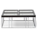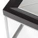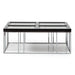 AICO Furniture Carmela Cocktail Table in Glossy Charcoal Sand LFR-CRMA201-830. The Carmela cocktail table is a masterpiece of design, featuring slender silver legs that give way to a seductive charcoal sand top. The four mirrored inlay squares with in the tabletop create an alluring play of light and dimension that will captivate your guests and leave them breathless.