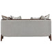 AICO Furniture Houston Loveseat Pebble in Walnut 9095825-PBL-416. The Houston Loveseat blends refined elegance with modern comfort. Upholstered in a mingled boucle fabric featuring soft hues of gray, ivory, and tan, this piece offers a sophisticated yet inviting aesthetic. Its walnut-finished wood frame is accented with painted gold details, adding a subtle touch of glamour. Designed for both style and relaxation, the loveseat includes a thoughtfully curated selection of feather-filled pillows in varied textures and tones, completing its luxurious appeal.